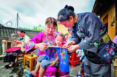 湘西州花垣县通过发展苗绣产业带动妇女返乡就业。图为村民就近接受苗绣技艺培训。资料图片