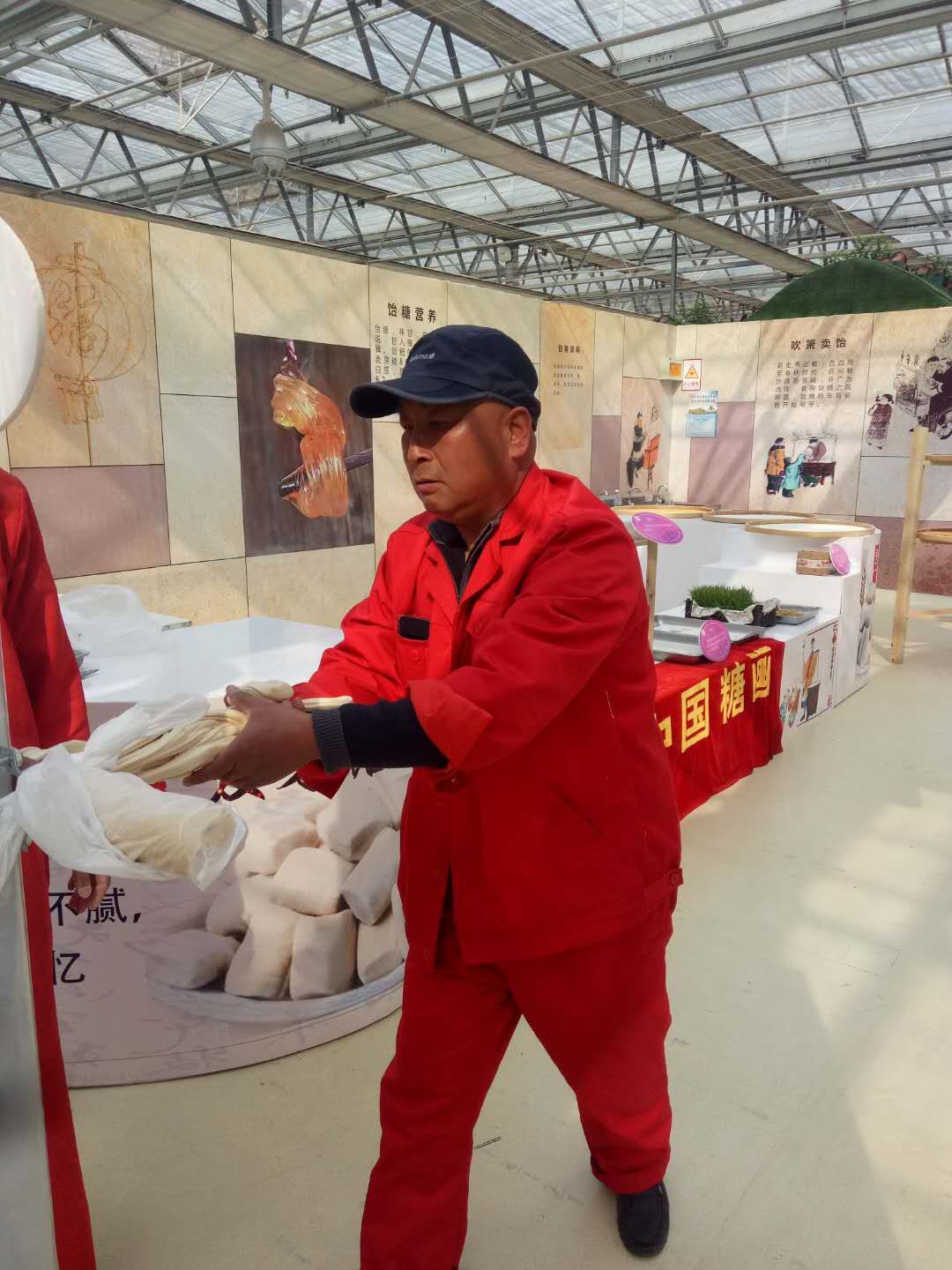 大叔正在体验制作麦芽糖!好吃的麦芽糖不粘牙,做糖还能强身健体~~~!