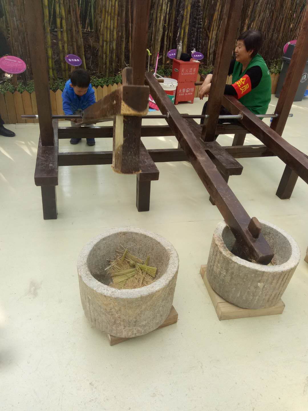 小朋友开心体验榨甘蔗。