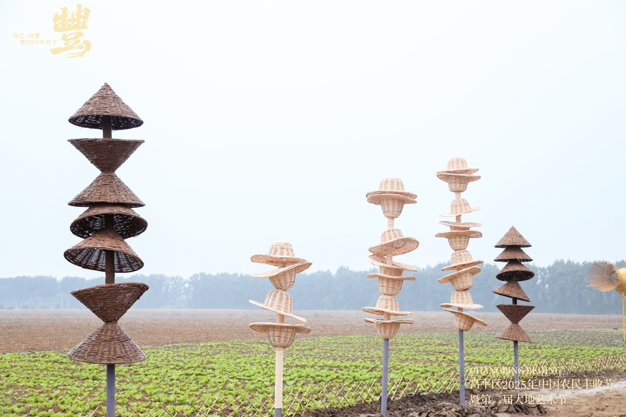 在西营村150亩主会场,听豐亭、豐收塔、豐腴、豐帽4组艺术家驻地创作的艺术作品,散落在田野之间,成为游客体验农趣、打卡拍照的热门点位。